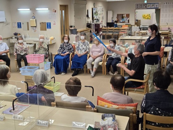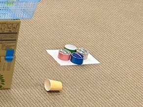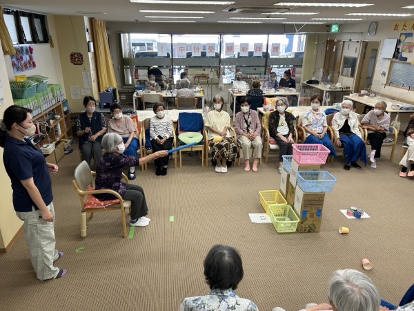 紙コップを飛ばして高得点のカゴに入れて下さい!