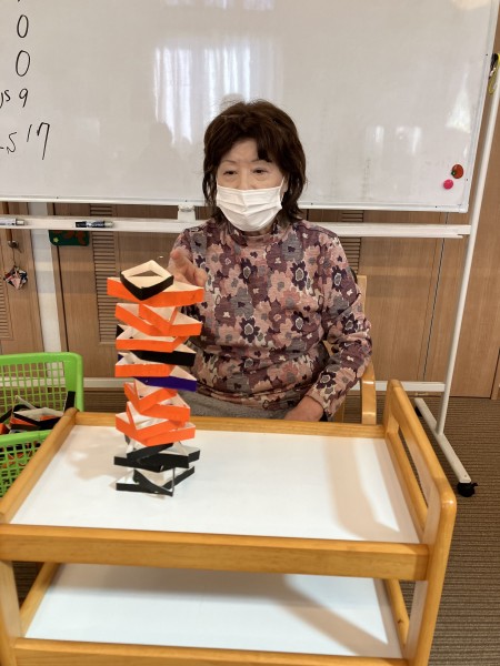 大きさや太さの違うリングを1分間で何段積み上げることが出来るか!