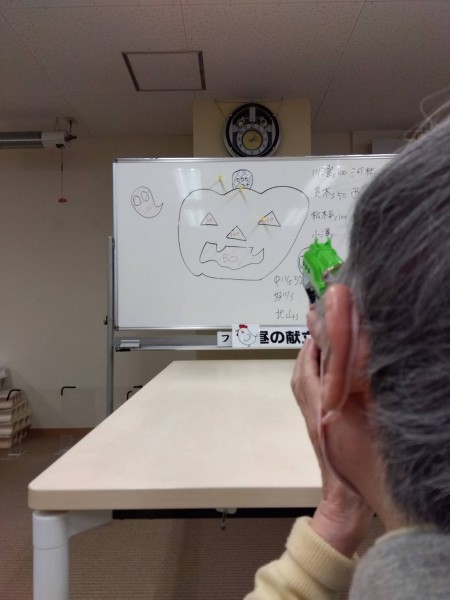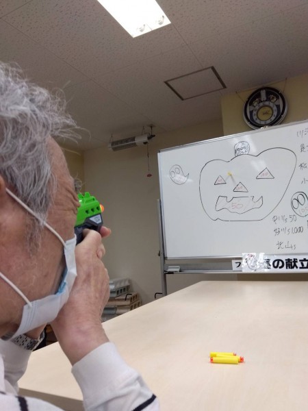 かぼちゃのお化けをめがけて鉄砲でアターーック!!!