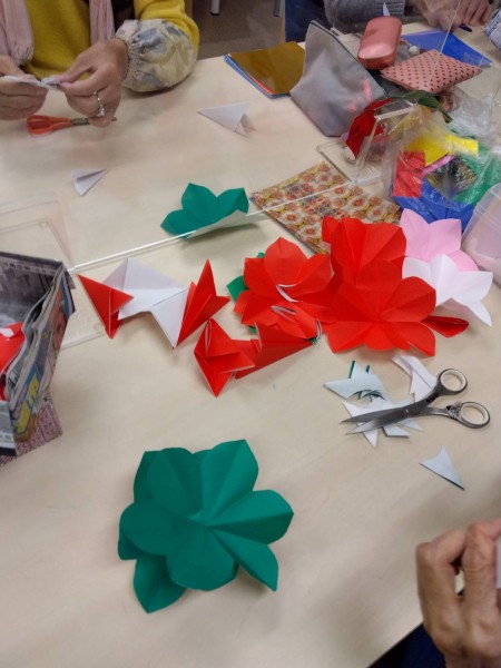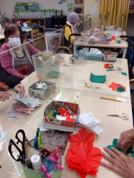 クリスマスに向けてポインセチア作りをして下さってます。壁画になるのが楽しみですね💛