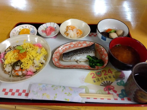 毎回、美味しい昼食です。お正月初めも彩り豊かなメニュー💛。