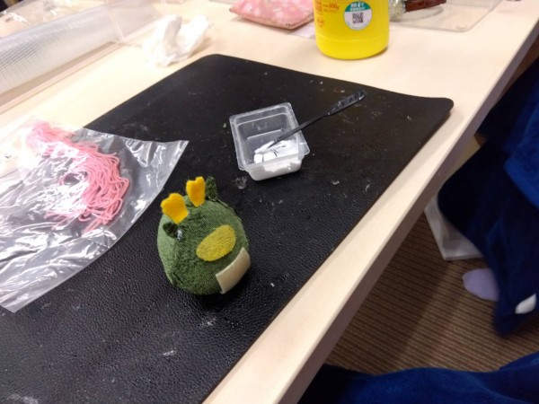 たまご型の発泡スチロールを使って干支の辰を。もうすぐ完成?
