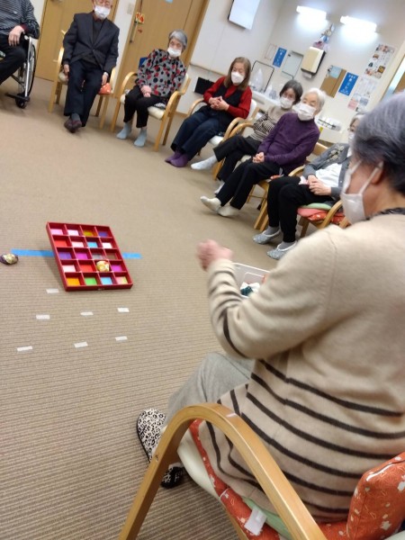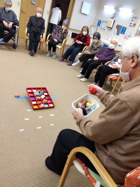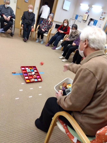 おじゃみがたくさん枠内にいれられるか?ゲーム。