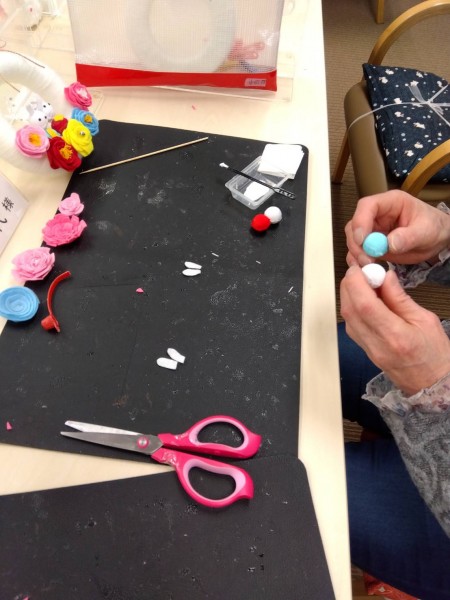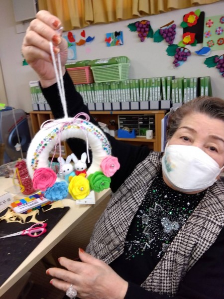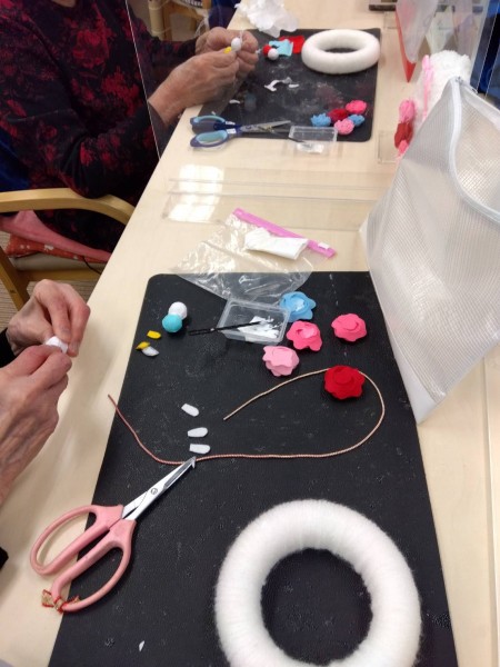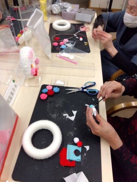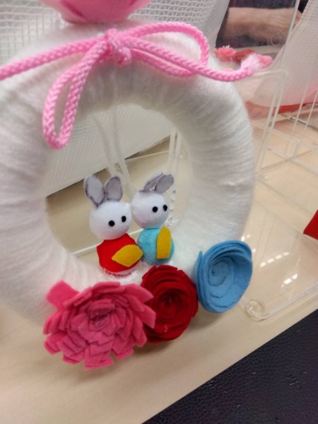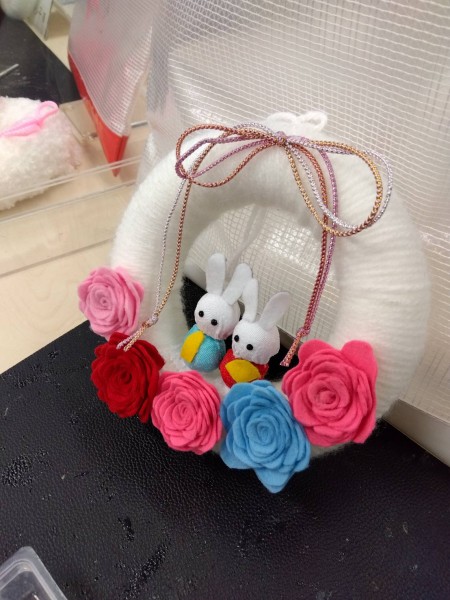 3月のうさぎ雛のリース作成中。もうすぐ完成ですよ。