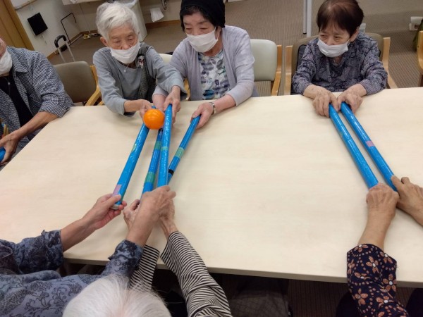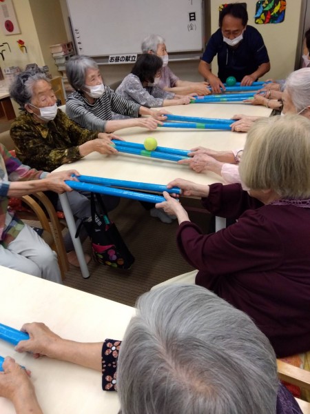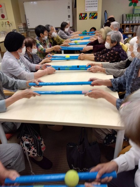 棒で色々なボールを乗せたり、挟んだり隣の棒へリレーゲーム🥎