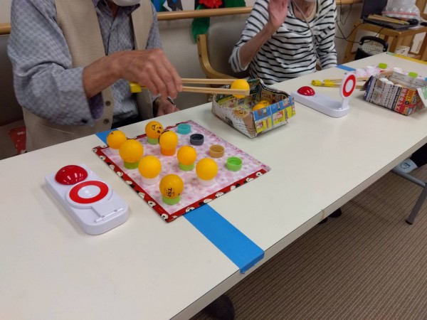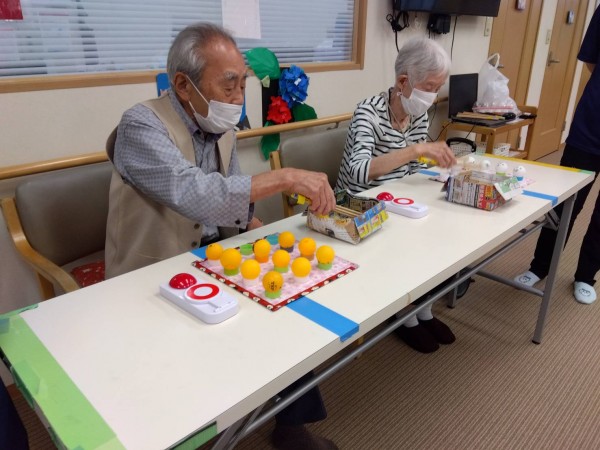 どちらが早くピン球をセットできるかゲーム!