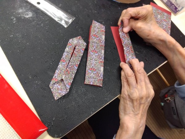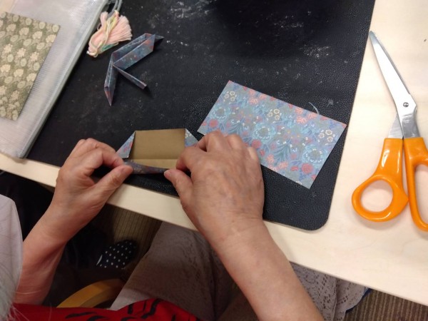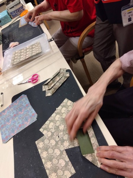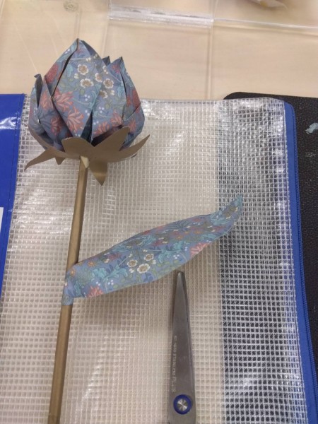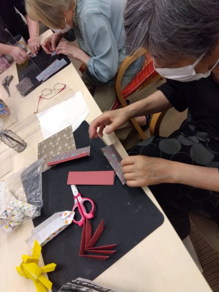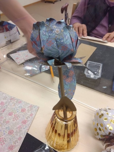 素敵な柄の入った折紙を使って立体的な作品を作ります。