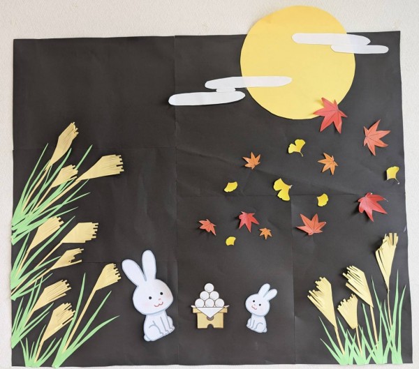 こちらは、玄関の壁画になり、十五夜をモチーフにしました🐰