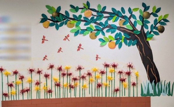 ナシの木🍐とトンボ、彼岸花🌸となっており、
