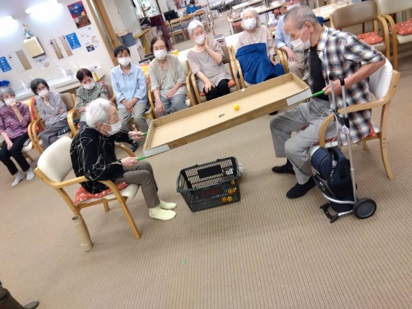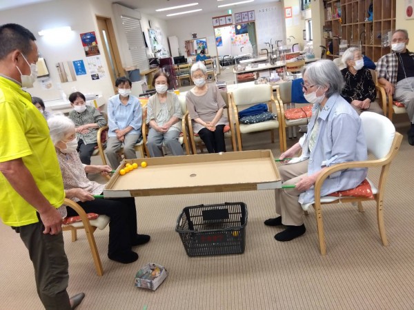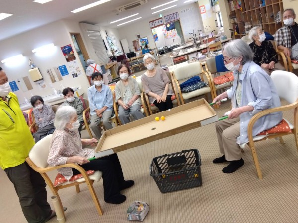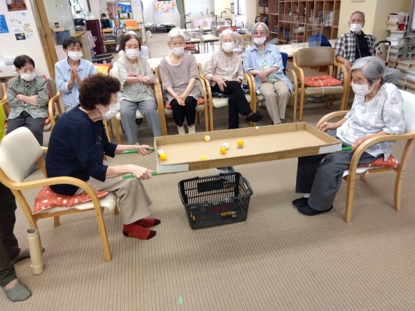 ふたりでうまくピンポン玉をどれだけ落とせるか、ゲーム☆
