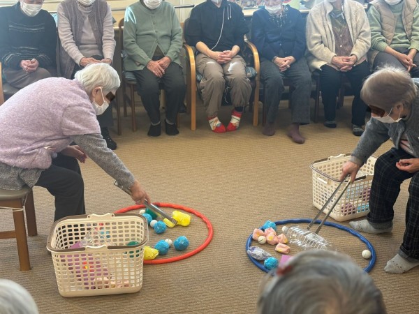 道具を使って機能訓練要素のあるレクリエーションに取り組まれました。