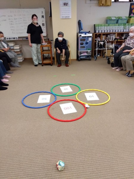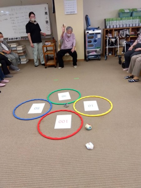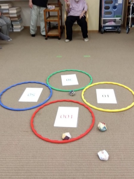 輪の中に「お手玉」を入れて点数を競いますよ‼️