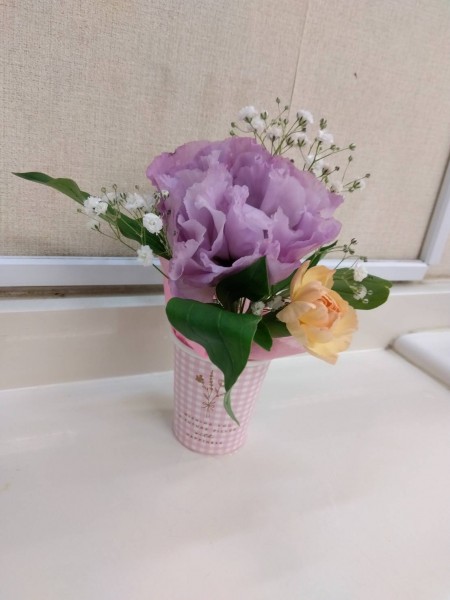 お部屋に花を飾ると、癒し・リラックス効果が得られるそうです。(1号店)
