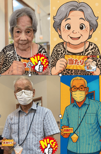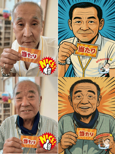 右側がご本人。左側が似顔絵になっています。(^^)/