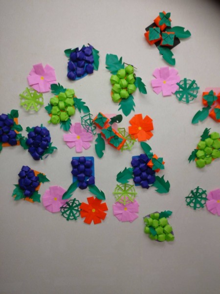 今回は季節のお花🌸や食べ物🍇を楽しく作成しております。