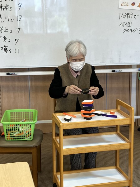 大きさや太さの違うリングを1分間で何段積み上げることが出来るか!