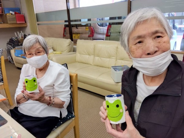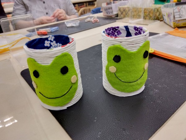 可愛いカエルのペン立て完成でにっこりにこにこに