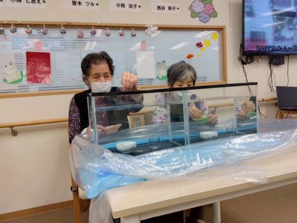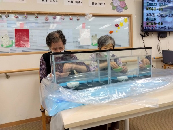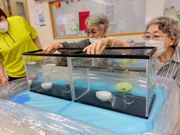 集中~~してコインをいれてますねえ、たくさん入るかしら・・・。