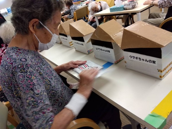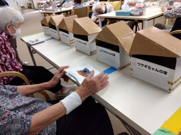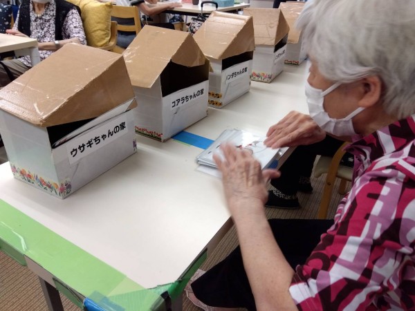 パンダ、うさぎ、コアラ、と各動物たちの家にハガキを間違いなく入れるゲーム。30秒以内でどれだけ正確にいれられるかファイトしてますーーー。